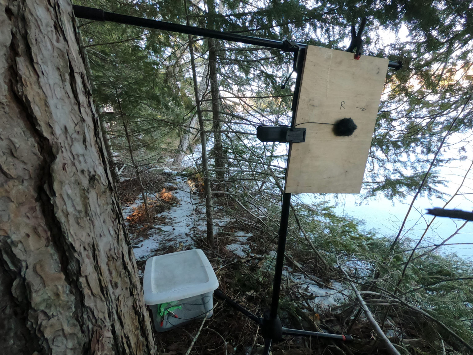 The main thing I have learned is to keep the cables hidden as much as possible. I use a flexible tubing with a slit down the center that allows me to hide the cable in the areas where it would be exposed. My setup is also fairly large and is on a mic stand. Perhaps with it not being attached to the tree has minimized the animal contact, because there are not many places for them to climb without toppling over.